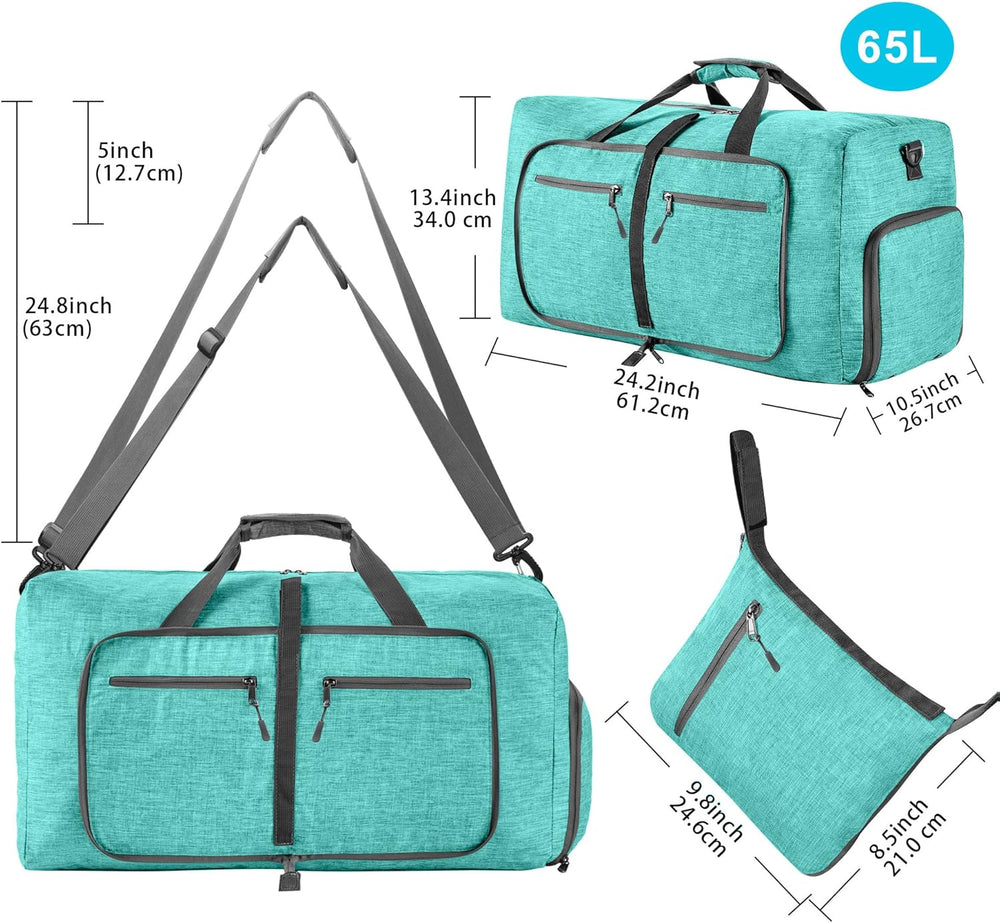 Vomgomfom Leichte Faltbare Reisetasche Gross 65L Sporttasche Damen Herren mit Schuhfach, Travel Duff