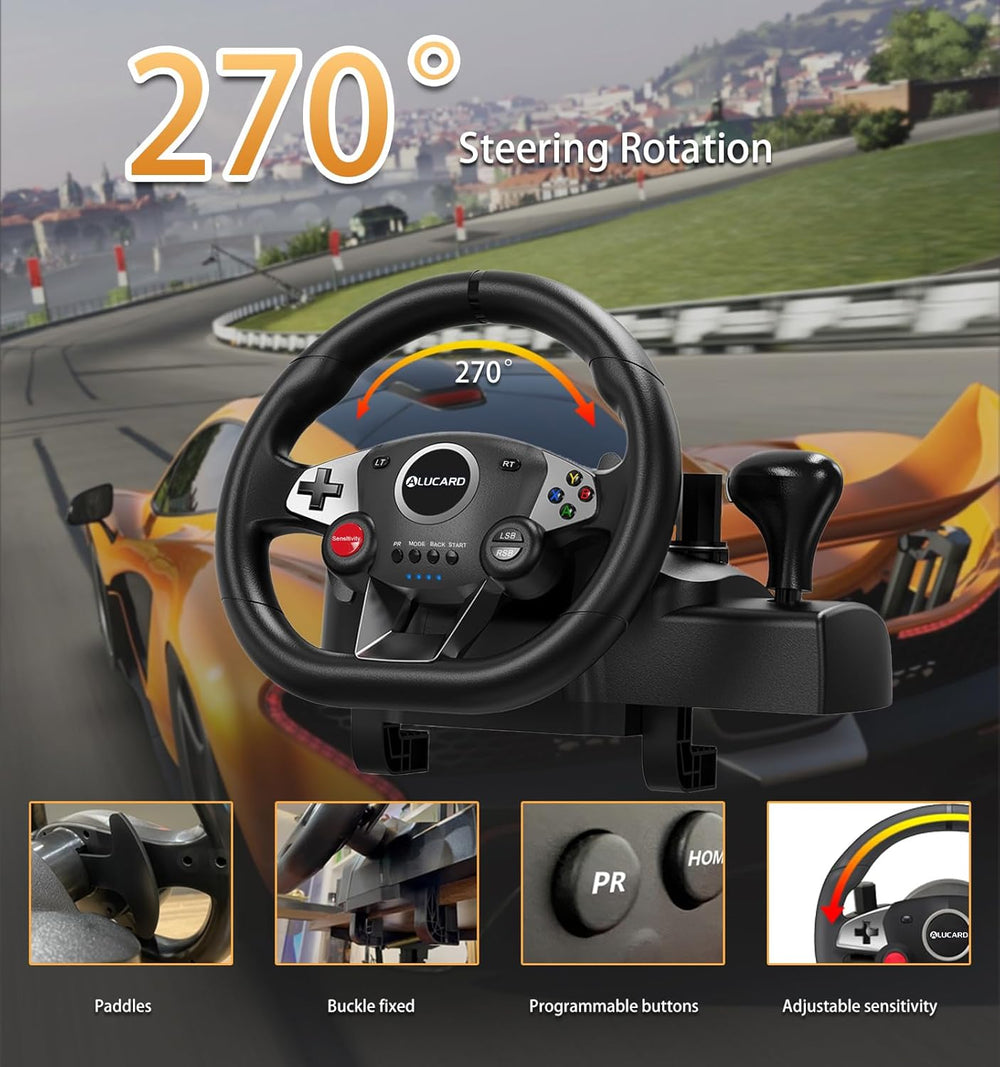 VooFun Racing Wheel, Gaming Lenkrad Kompatibel für PC/ PS4/ Switch/ PS3/ Xbox One/Xbox 360, PC Lenkr