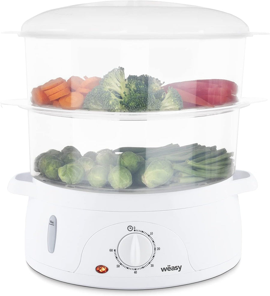 Wëasy Elektrischer Dampfgarer VEGE8 Multifunktions 9 l kompakt, 3 stapelbare Schalen zum Kochen von