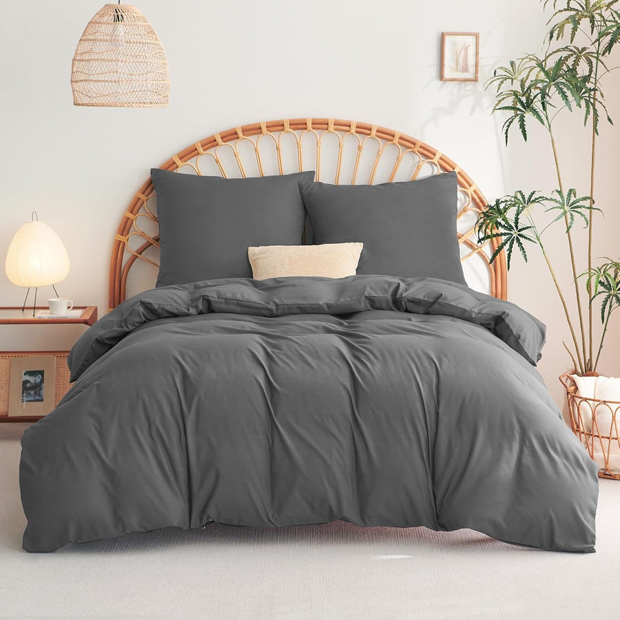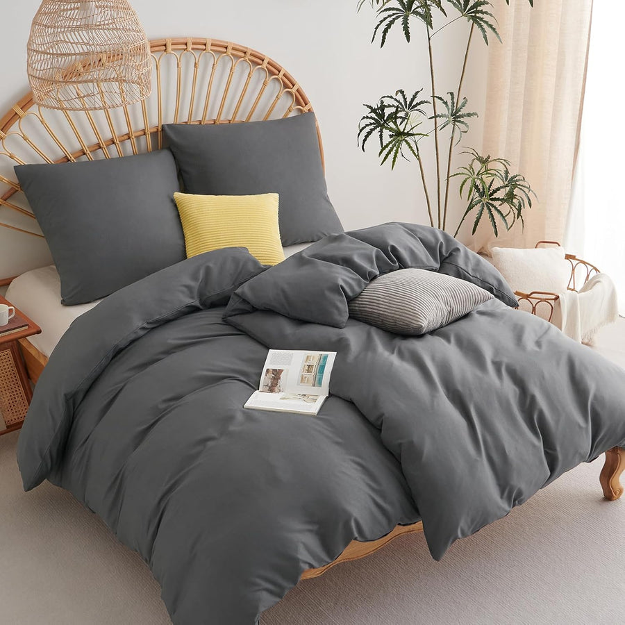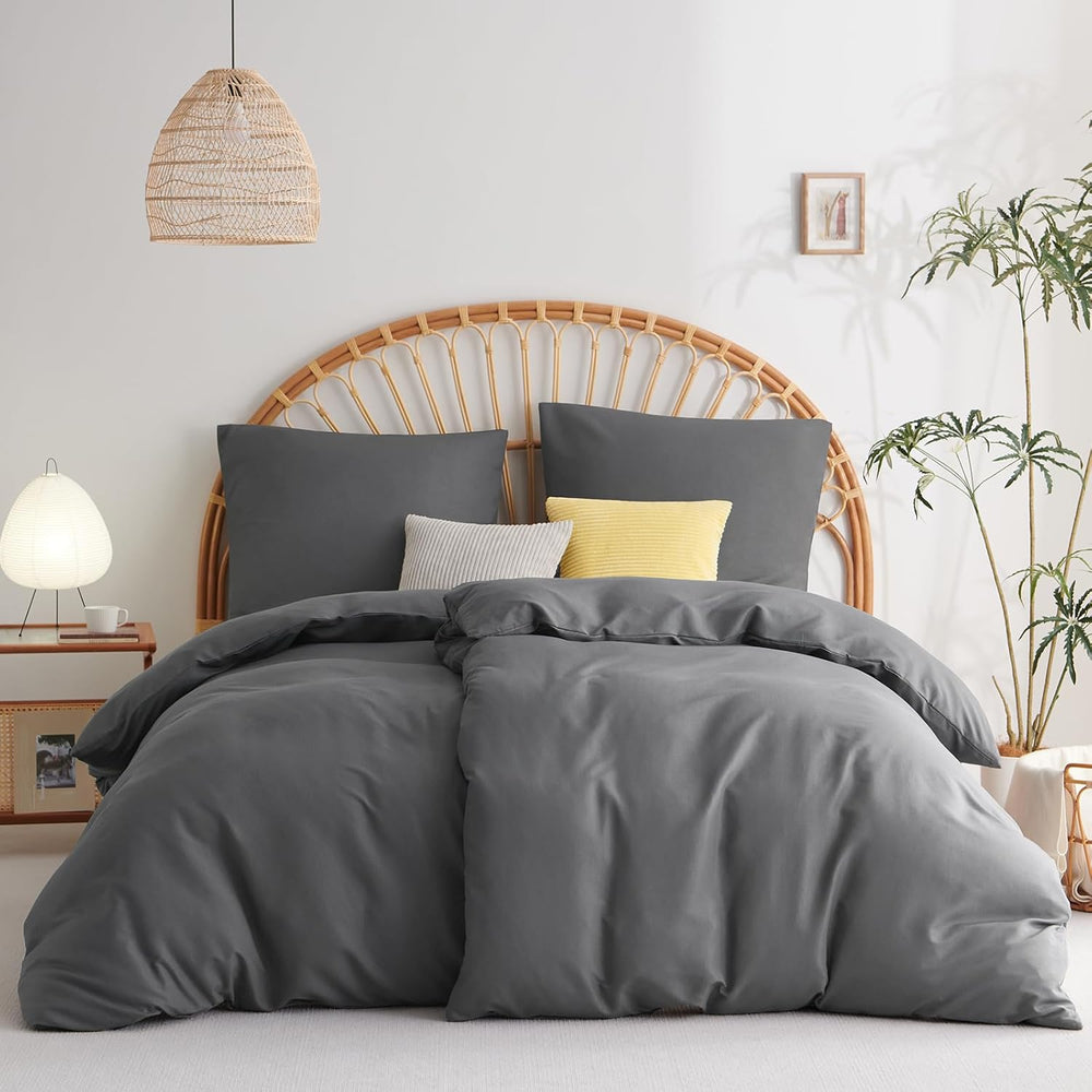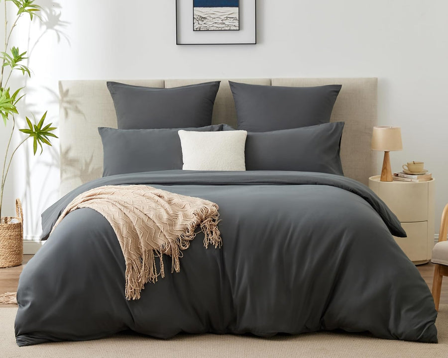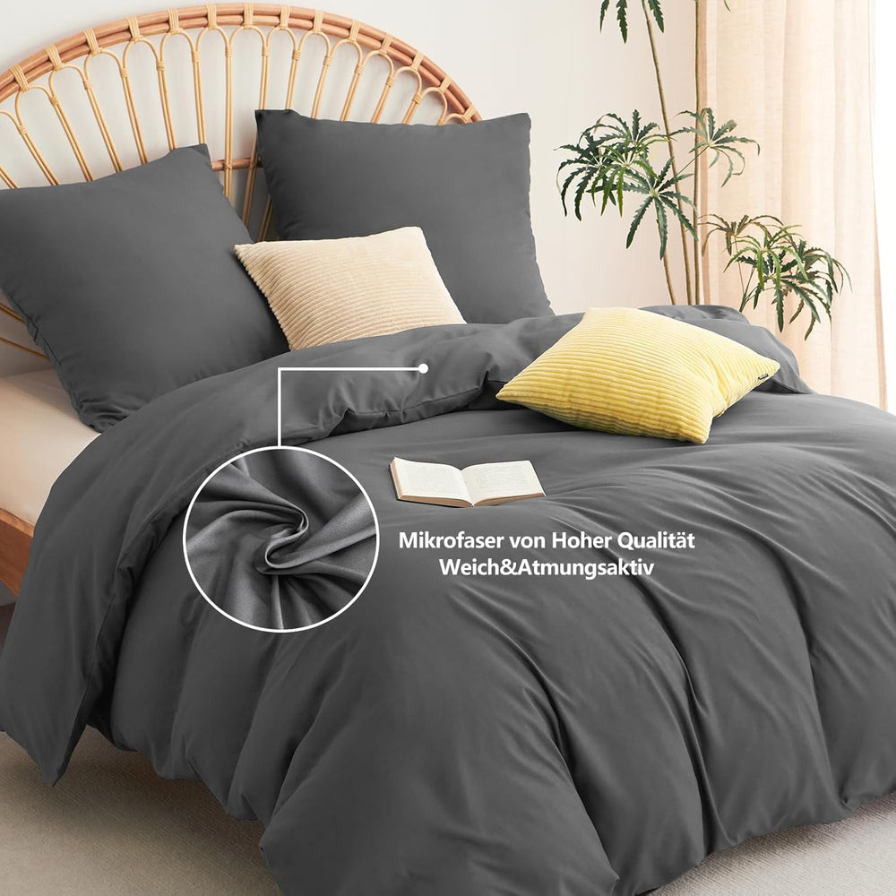 WAVVE Bettwäsche 135x200 4teilig Anthrazit - Bettbezüge 135 x 200 2er Set mit Kissenbezüge 80x80 cm,