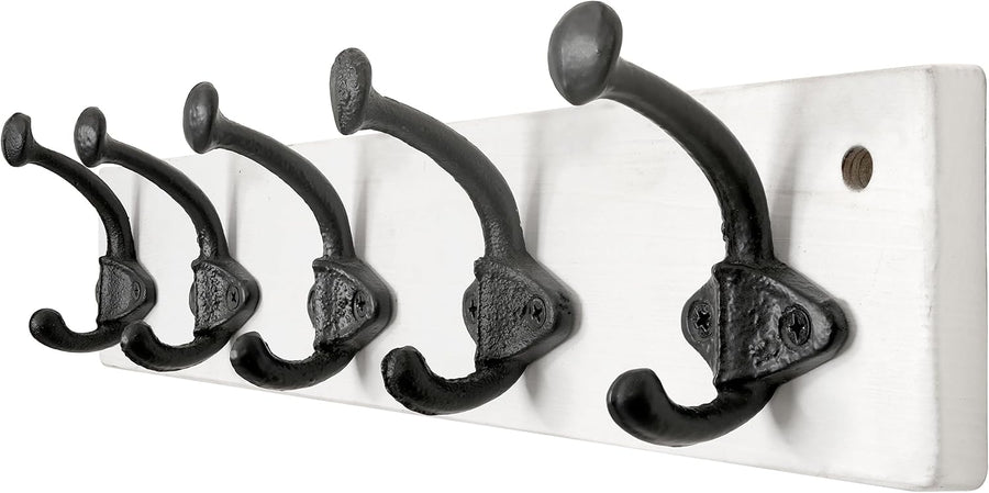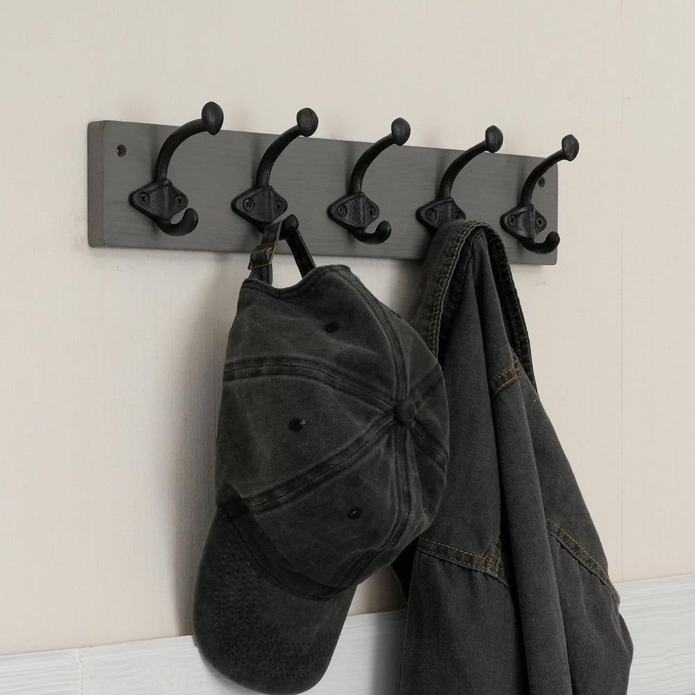 WEBI Garderobenleiste mit 5 Haken Gusseisen,Wandgarderobe Holz Garderobenhaken Wand Garderobe Hakenl