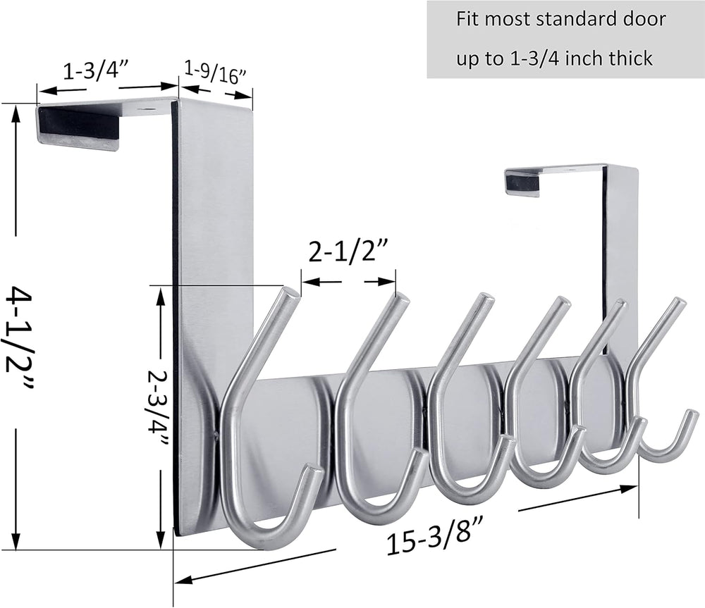 WEBI Türgarderobe mit 6 Haken,Türhaken zum Einhängen,Türaufhänger,Kleiderhaken Tür,Haken Tür,Türhake