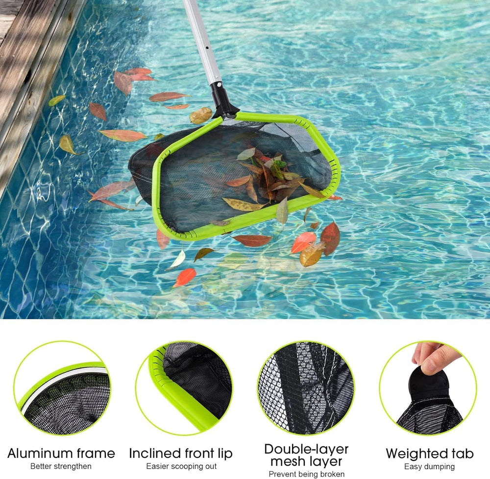 WELDUN Metall Poolkescher Professionell, Bodenkescher mit Aluminiumrahmen, doppelt tiefes Netz zum R