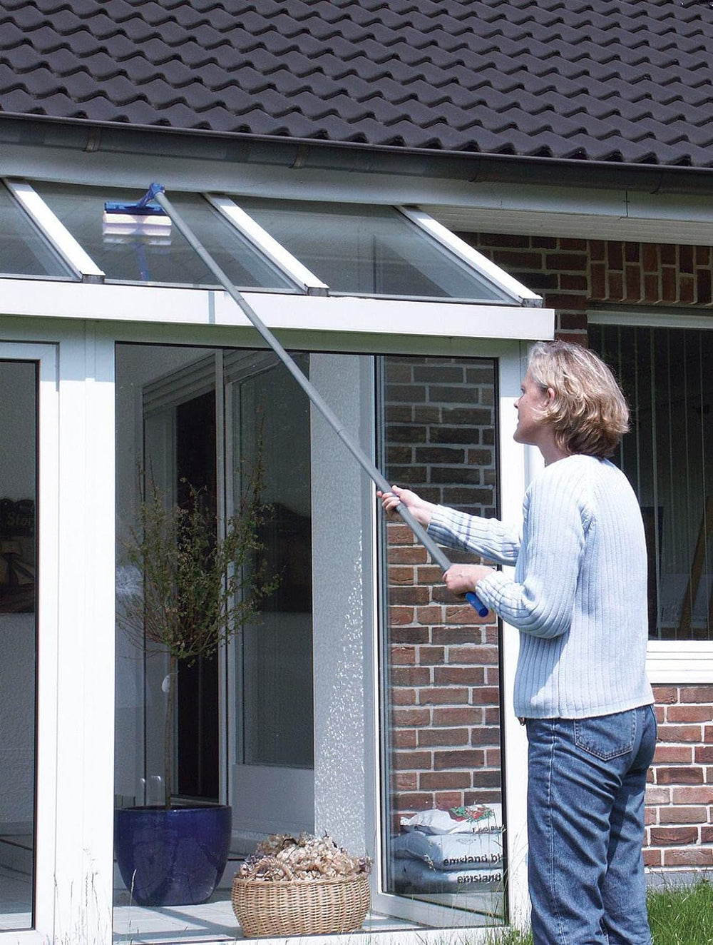 WENKO 7161500 Fensterwischer - extra lang (3m), Microfaser, Wischkopf mit Schwamm, Knickgelenk A 1 -