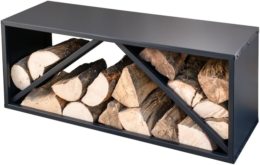 WESTMANN Kaminholzregal aus Stahl | 104x34x40 cm Schwarz | Feuerholzregal für den Innen- & Aussenber