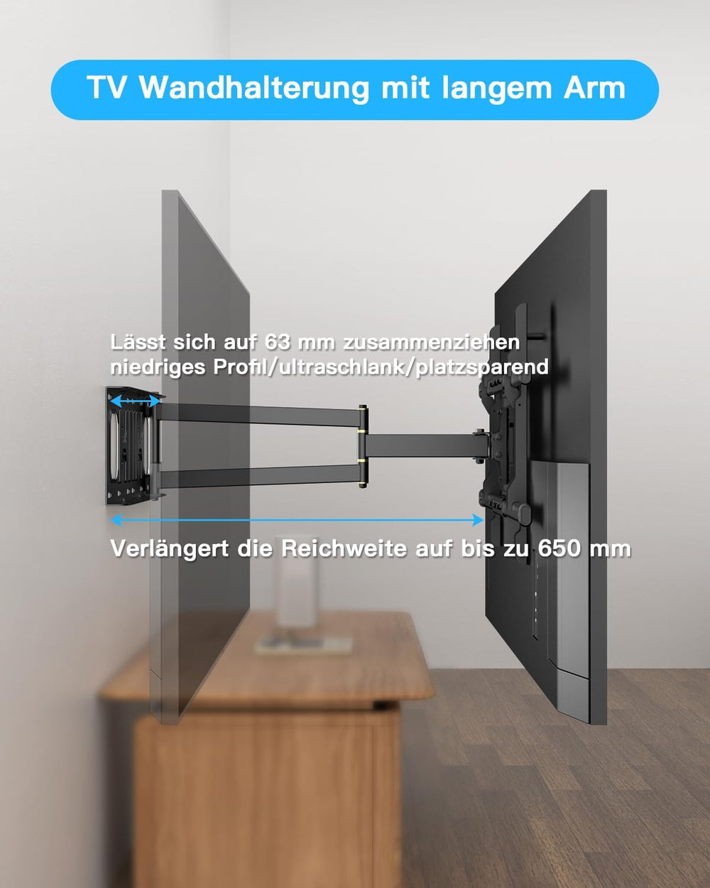 TV Wandhalterung mit 650mm Langem Arm WHYFONE Fernsehhalterung Wand Schwenkbar Halterung Volle Beweg