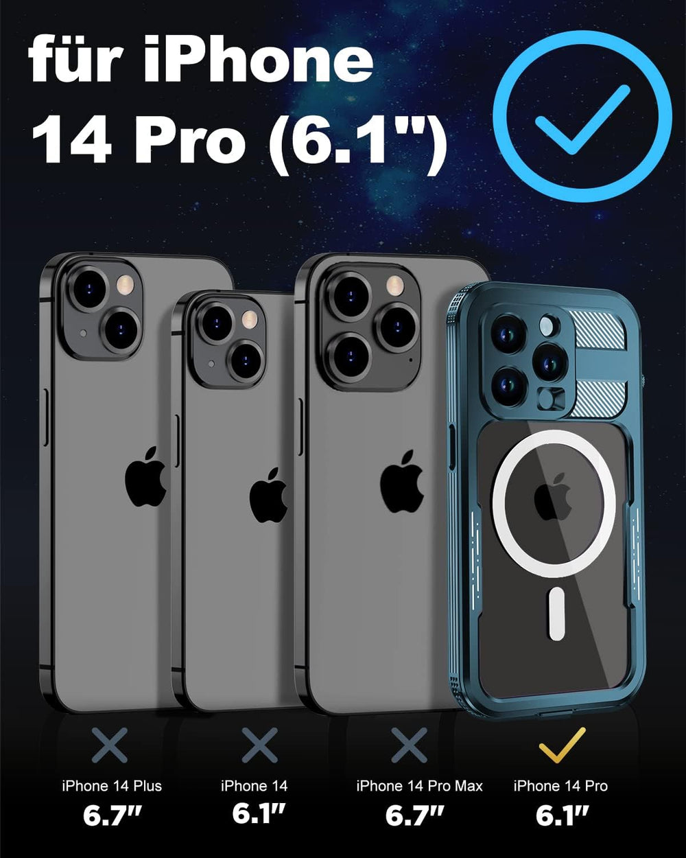 WIFORT für iPhone 14 Pro Wasserdicht Hülle mit Magsafe - 360 Grad Schutzhülle Outdoor Handyhülle IP6