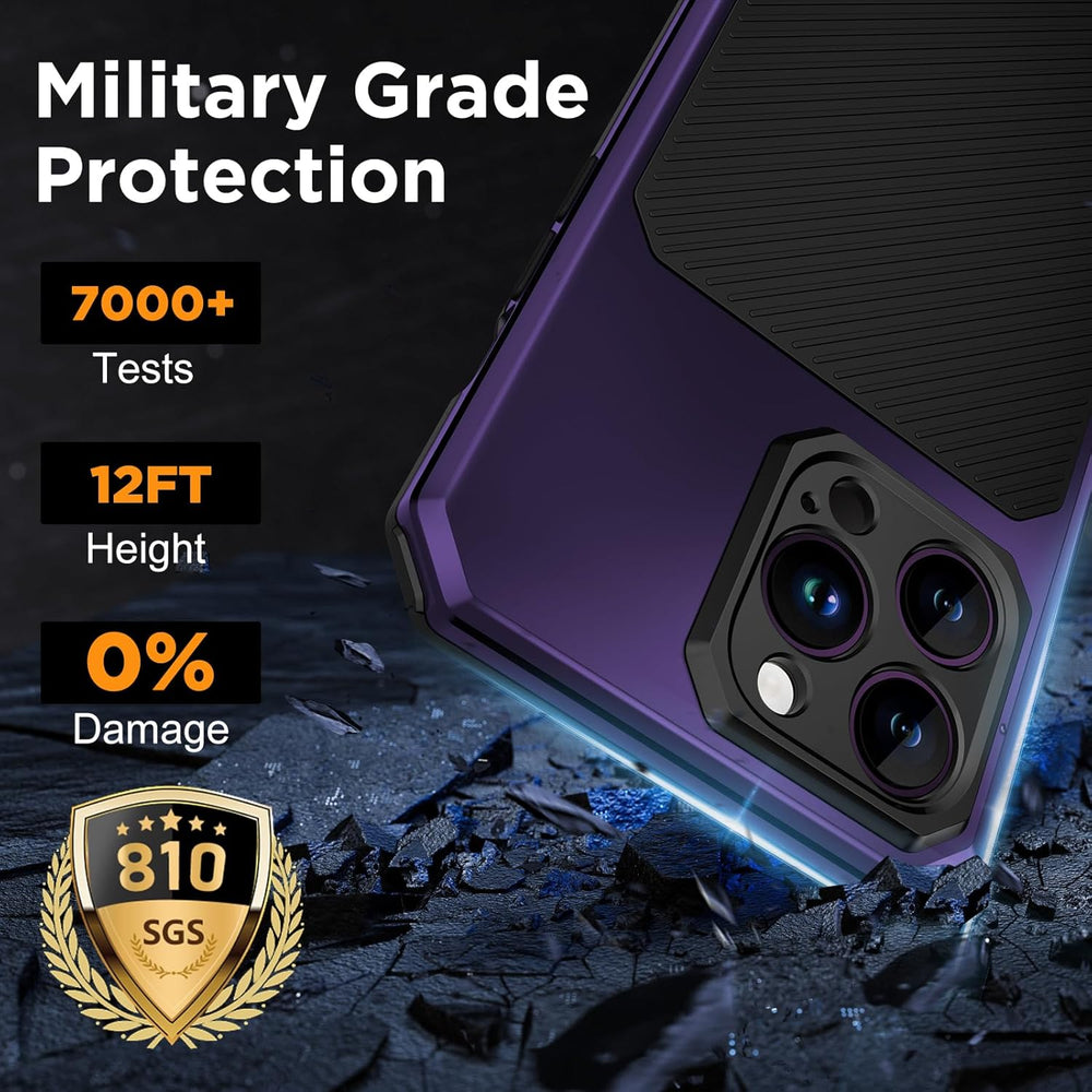 WIFORT Magnetisch Metall Hülle für iPhone 14 Pro Max mit 2 Stück Schutzglas, Militärnorm Stossfest H