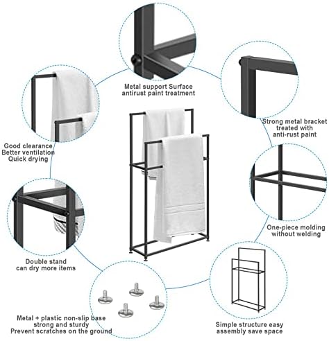 WING Handtuchständer freistehend Metall, handtuchhalter Bad stehend schwarz, Baden Handtuchständer m