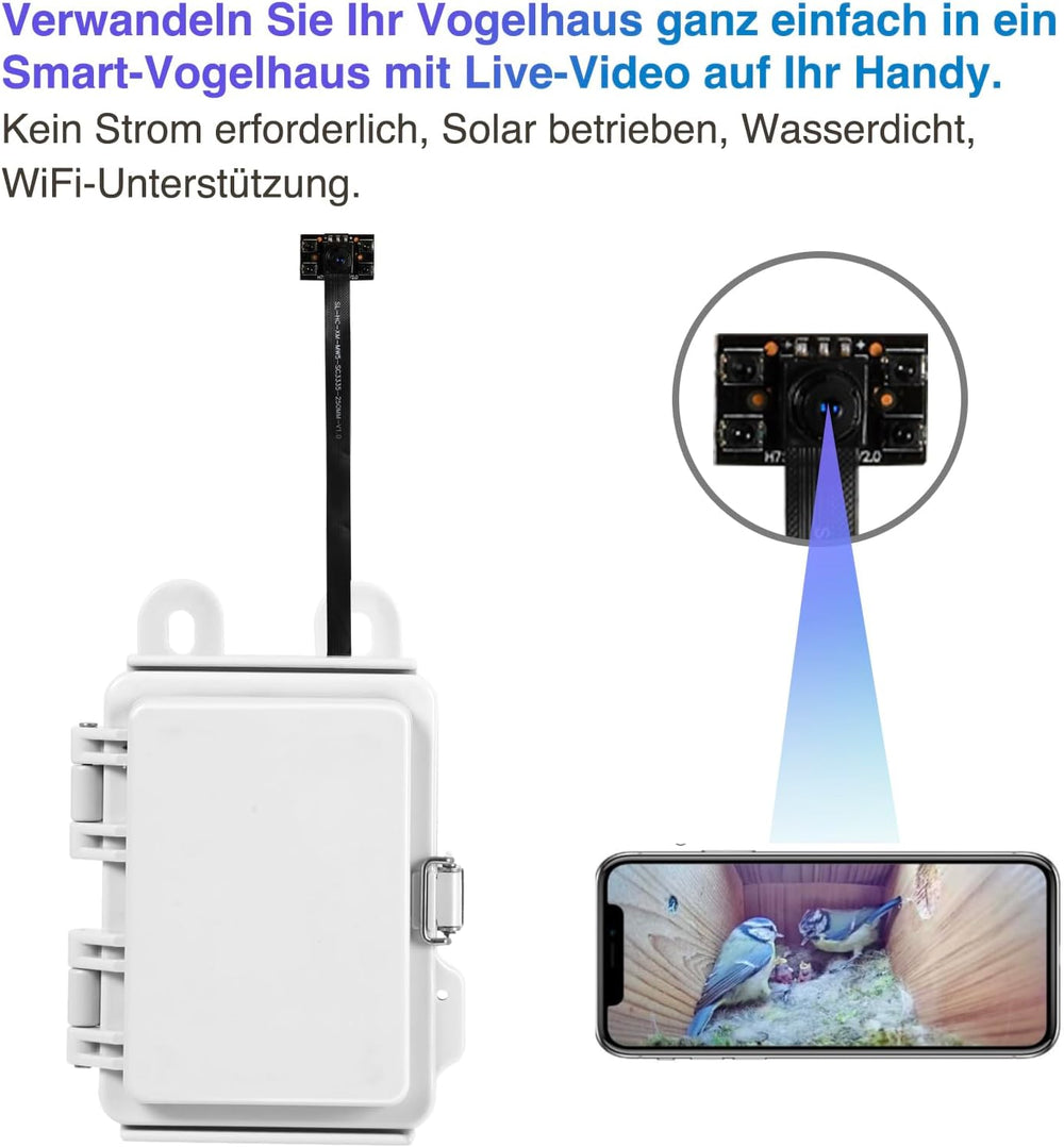 WIWACAM nistkastenkamera WLAN Kamera, 16Watt Solar, 10000mAh Akku fur Nistkästen, Vogelhaus, birdbox