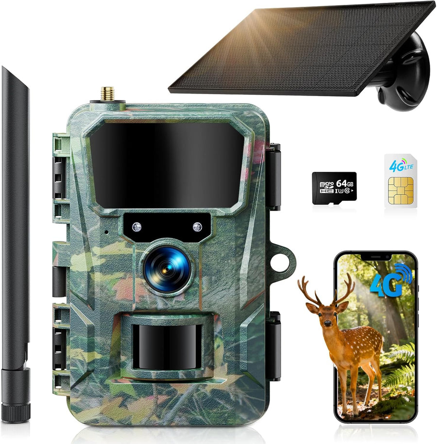 WOLFANG Wildkamera, 2.5K 4G LTE Live Solar Übertragung Wildkamera mit Handyübertragung App, Echtzeit