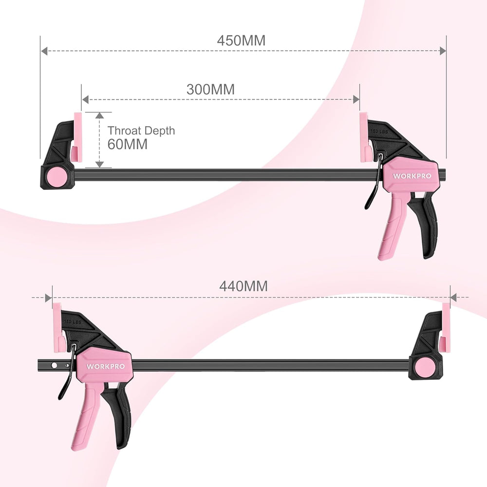 WORKPRO Einhandzwingen Set Rosa 2 Stück Schraubzwingen Spanner, Spannweite 300 mm, Dehnbereich bis z