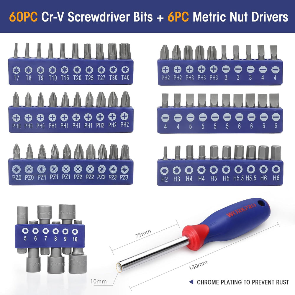 WORKPRO Universal Werkzeugset Haushalt 156-teilig inkl. Werkzeugtasche mit weiter Öffnung für Home R