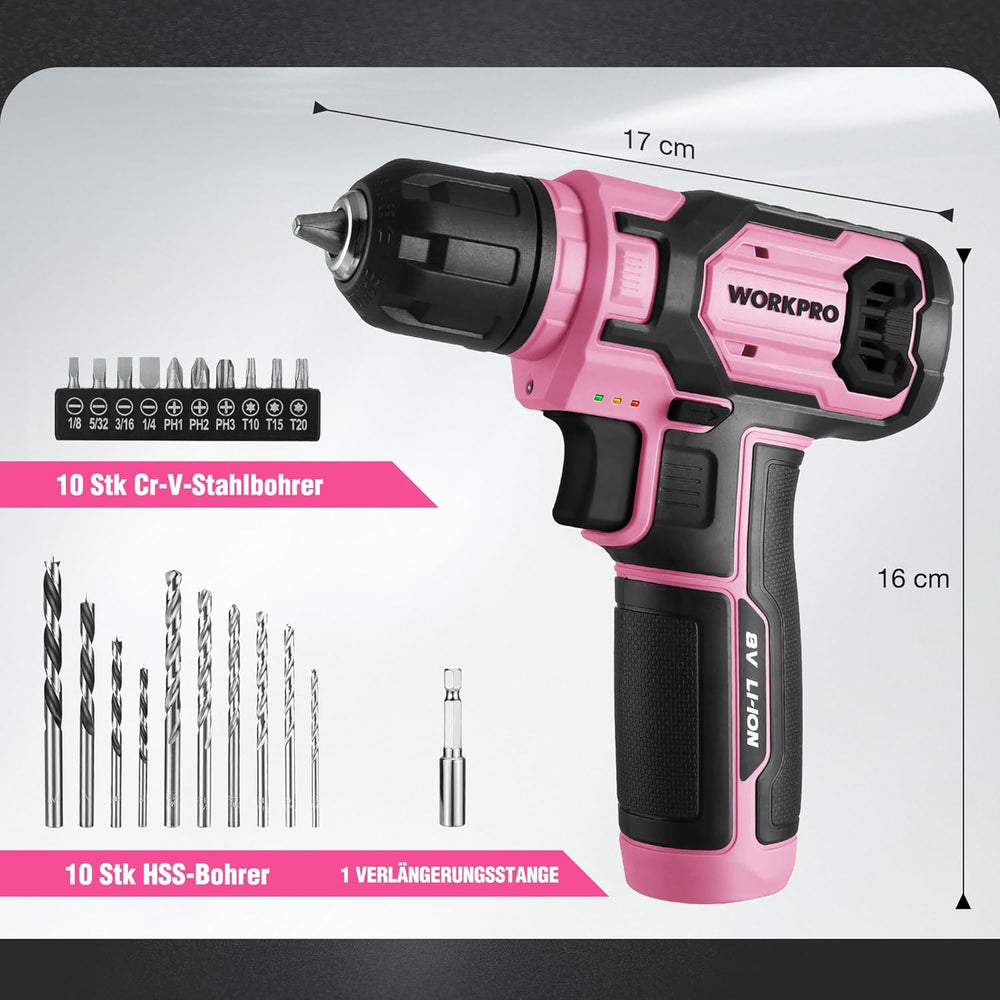 WORKPRO 8V Akku Bohrschrauber Set mit Transportkoffer, Akkuschrauber, 2x2000 mAh Akkus Bohrmaschine,