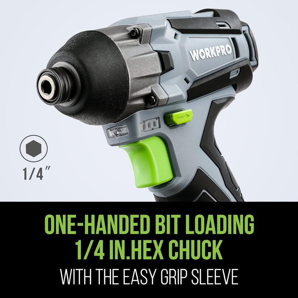 WORKPRO Akku-Schlagschrauber, 12V Schlagschrauber 100 Nm 2000 U/min, 1/4”Spannfutter, mit 2,0 Ah Akk