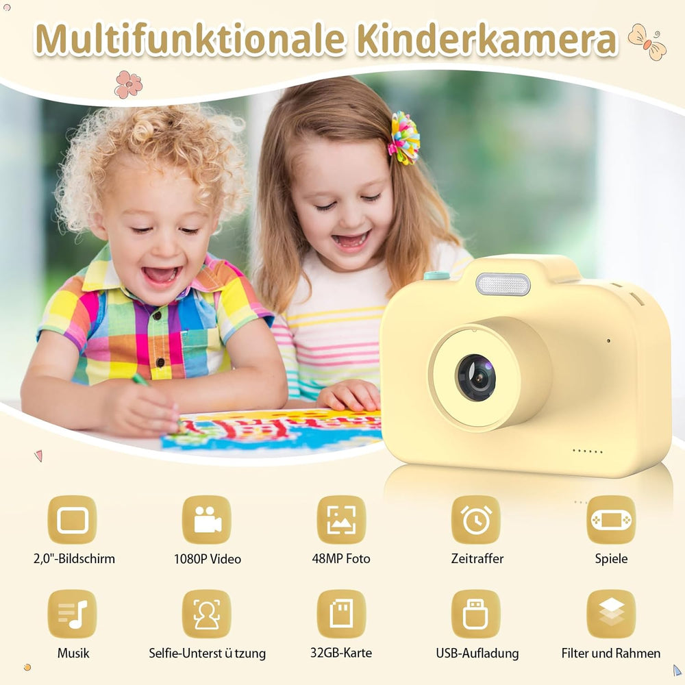 Kinderkamera, 1080P Kinder Kamera mit 2,0" Bildschirm & 32GB-Karte, Digitalkamera Kinder & Selfie-Vi