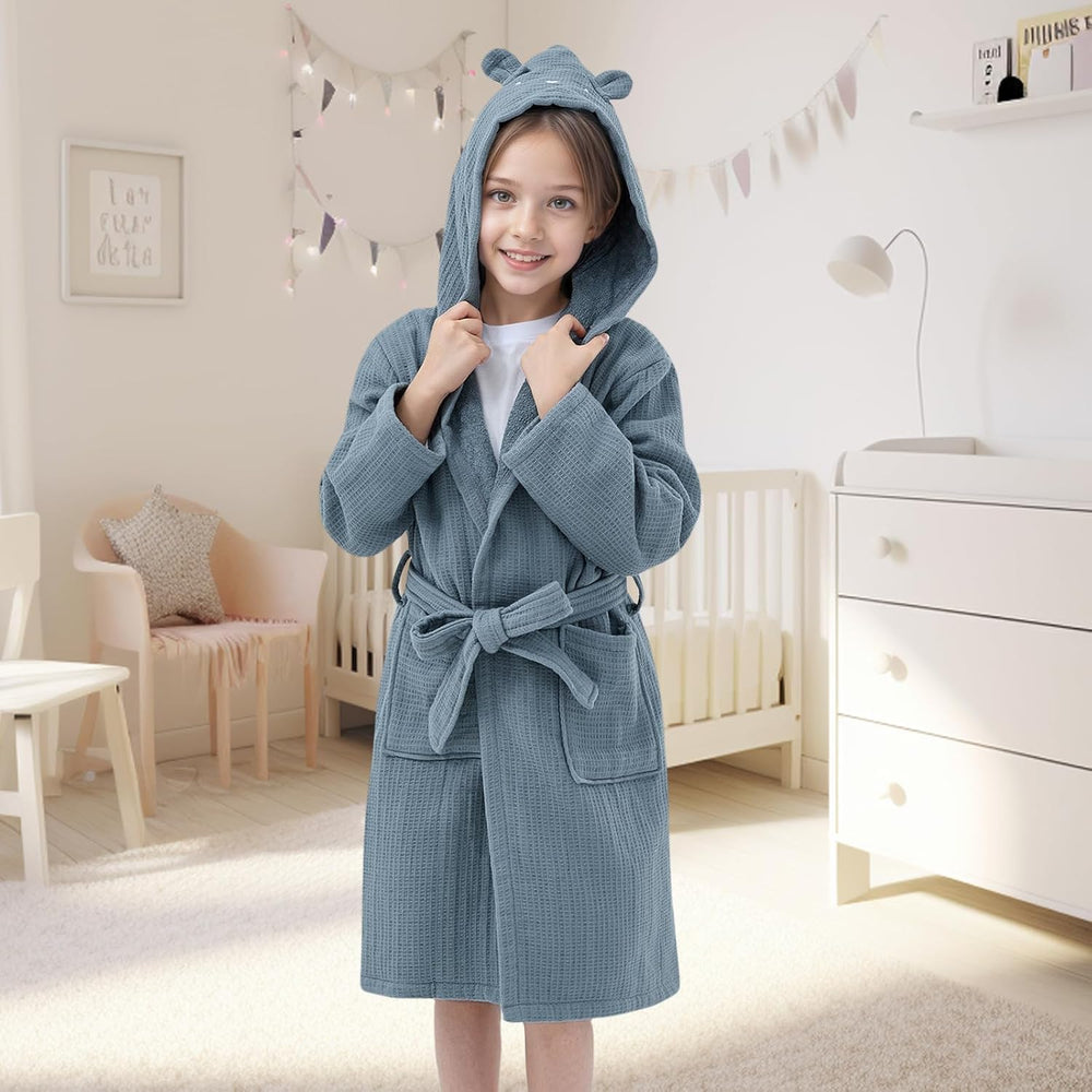 WYTbaby Bademantel Kinder 100% Baumwolle Weich Flauschiges Frottee Kinder Morgenmantel Mit Kapuze fü