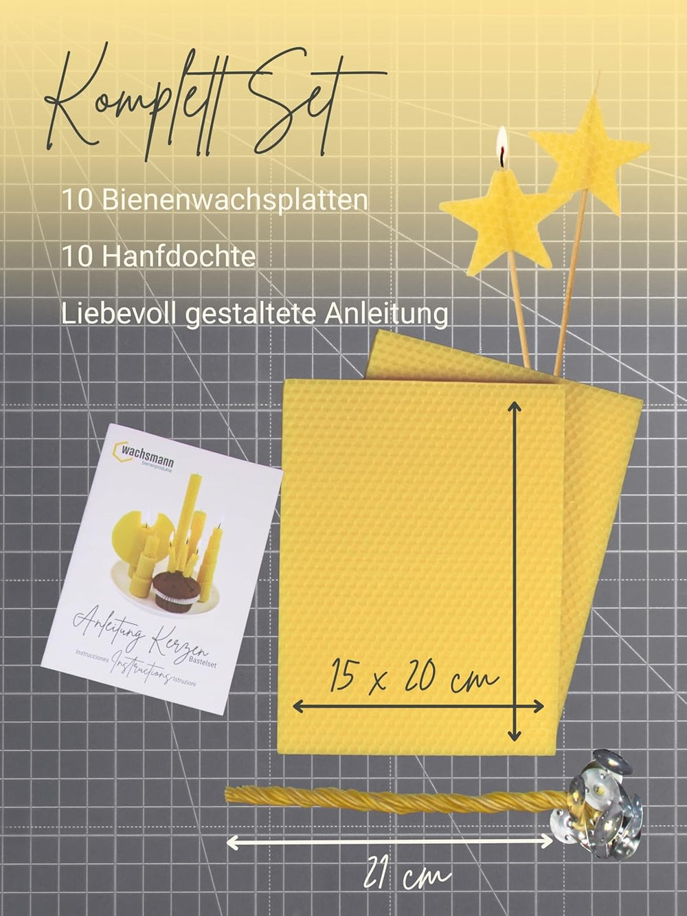 Wachsmann 100% reines Bienenwachs aus Deutschland, Kerzen selber machen Set – 15 Bienenwachsplatten