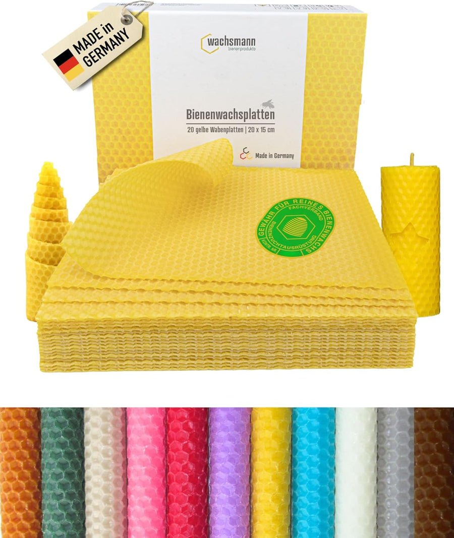 Wachsmann 20 Bienenwachsplatten aus Deutschland, gelb, Wachsplatten 20 x 15 cm, Bienenwachs Kerzen s