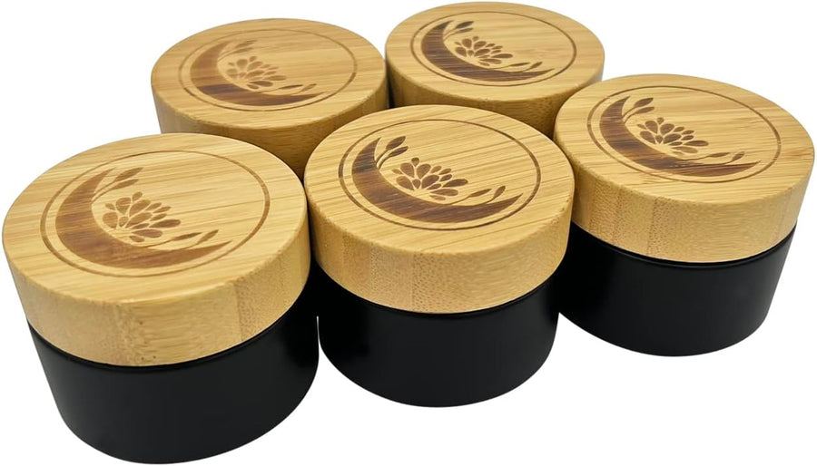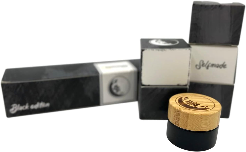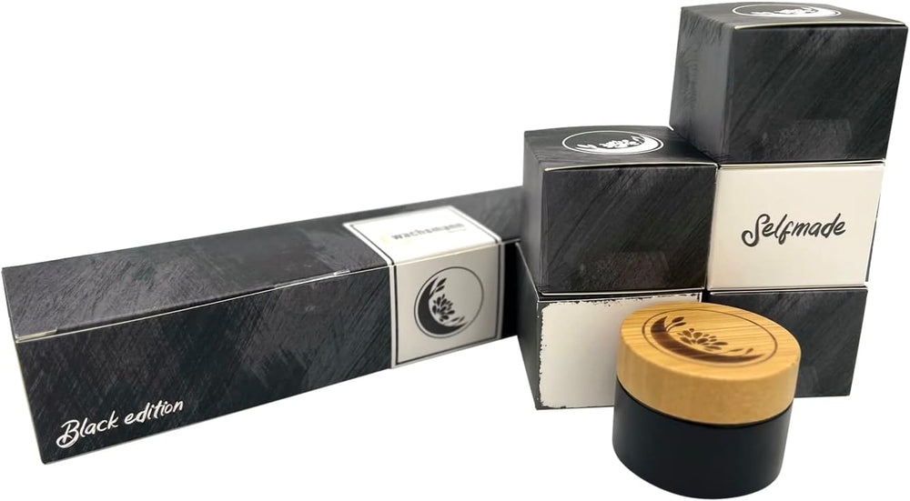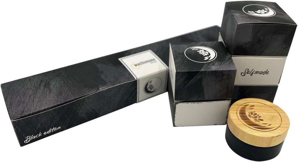 Wachsmann | Hochwertige Glastiegel mit Bambusdeckel | schwarz | Für nachhaltige DIY-Naturkosmetik |