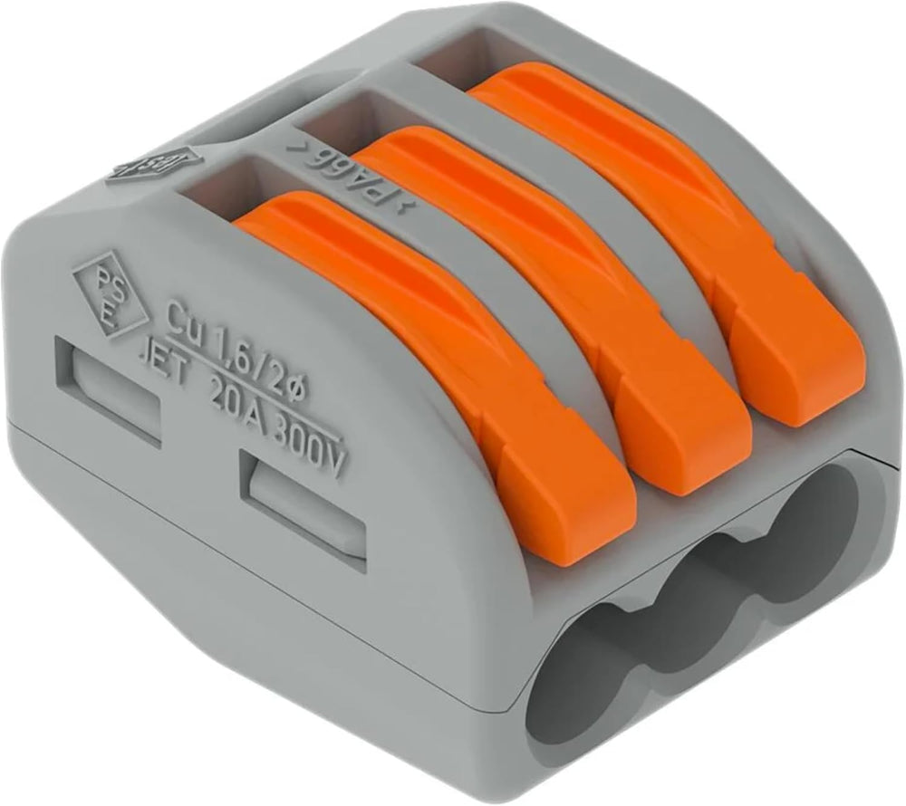 WAGO Klemme, 3-Leiter, Verbindungsdosenklemmen, 2273-203 (100 Stück), Orange, 3er Pack Orange 100 St