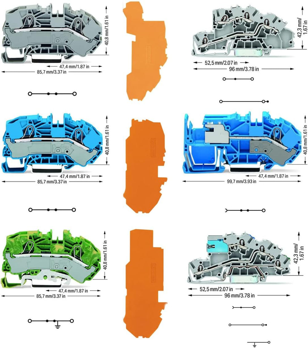 WAGO 821-122 Abzweigklemmen, Grau und Blau