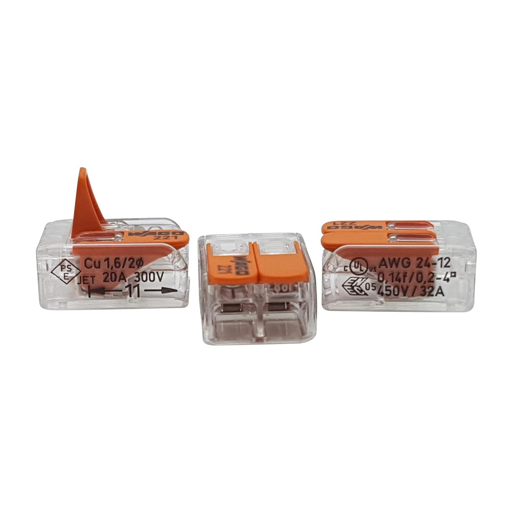 50 Stück Wago Klemmen 221-412 Verbindungsklemme 2 Leiter mit Betätigungshebel 0,2-4 qmm kleine Baufo