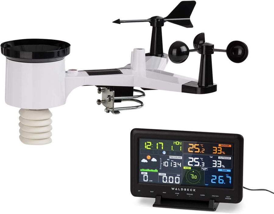 Waldbeck Huygens - 6-in-1 Profi-Wetterstation, 6 Messungen auf einen Blick, Wetterwarnungen, Live-We