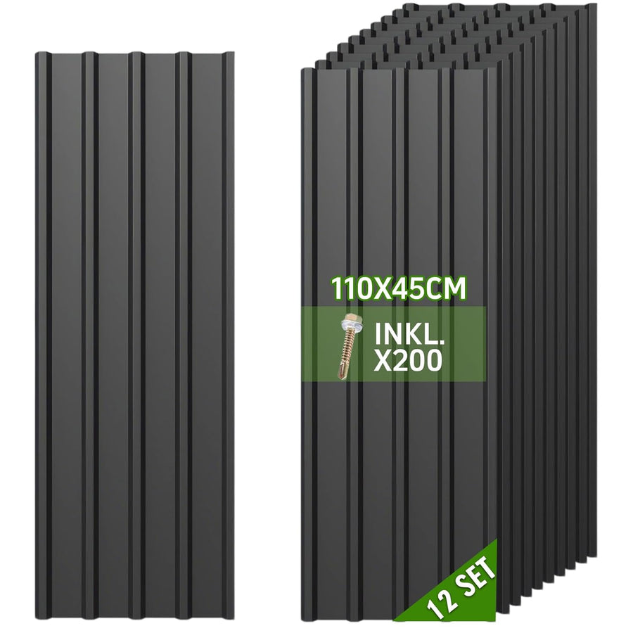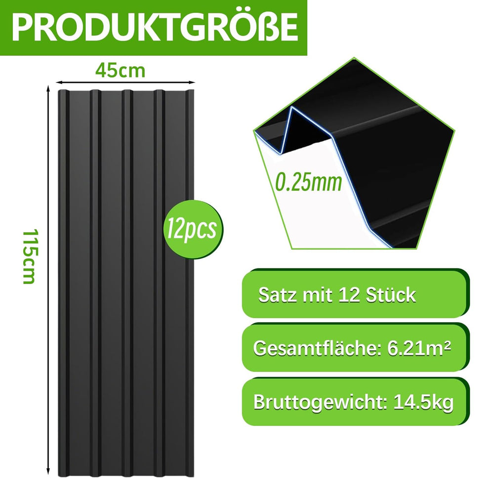 Profilblech Trapezblech 12er Set, 115x45cm (6,21m²) Dachplatten Wellblechplatten, Schwarz Verzinkt M