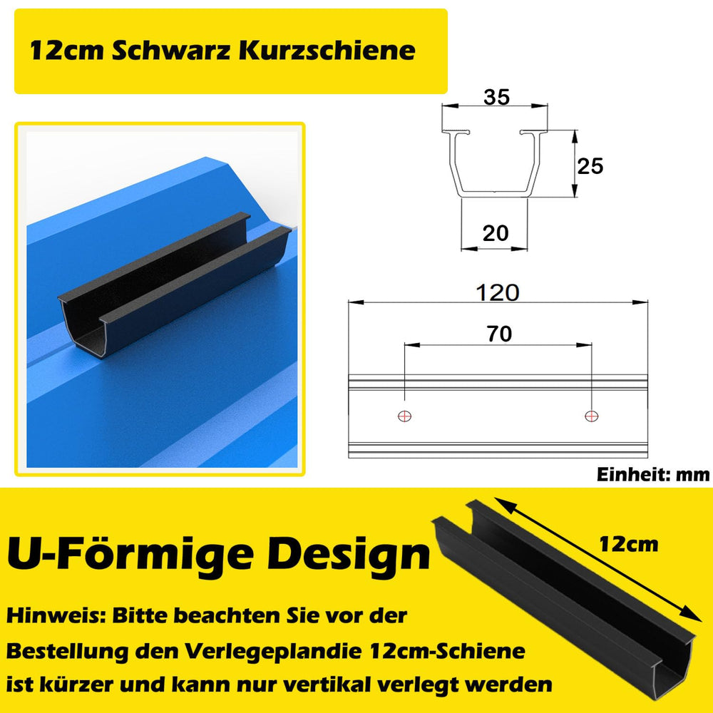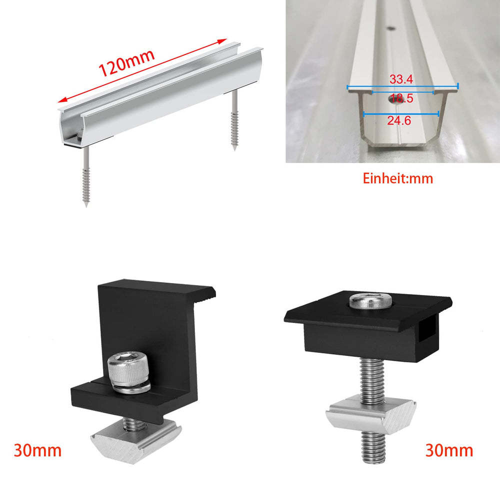 Solarmodul Halterung Flachdach, Alu Photovoltaik Montageschiene 12CM, Verstellbare Schwarz Klemme fü