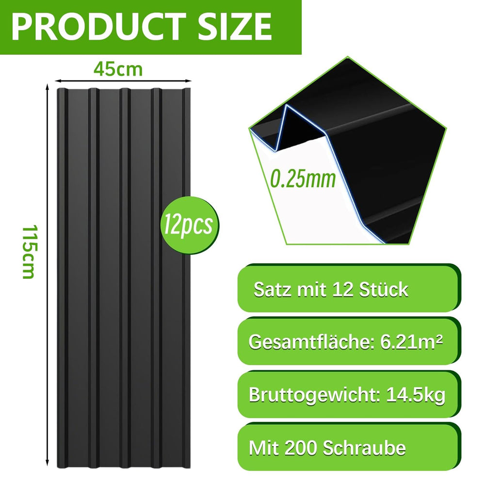 Profilblech Trapezblech 12er Set, 115x45cm (6,21m²) Dachplatten Wellblechplatten mit 200 Schraube, S