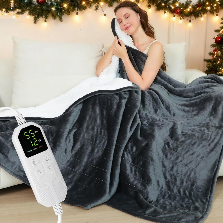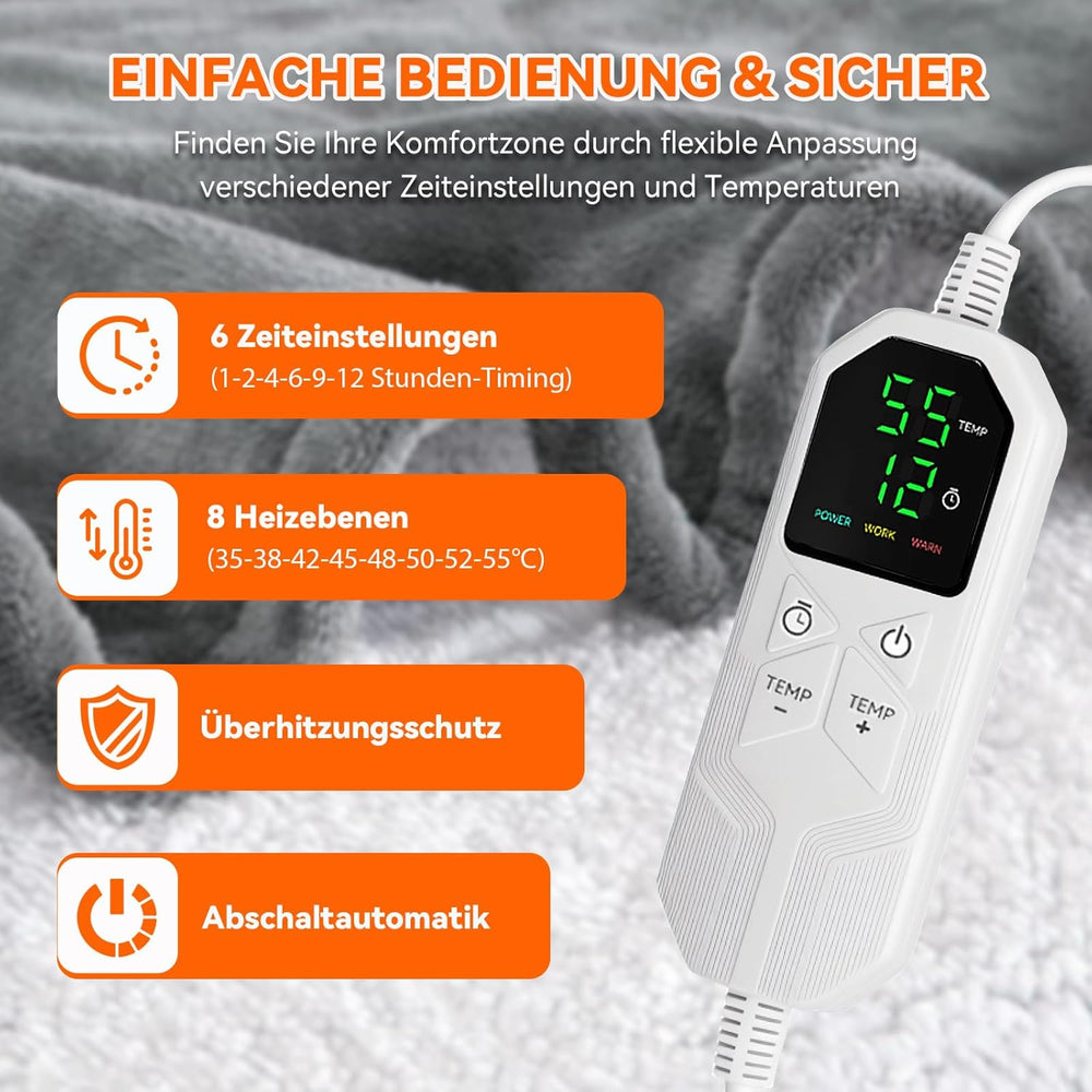 Heizdecke mit Abschaltautomatik, 180 × 130 cm Flanell Elektrische Wärmedecke mit 8 Heizstufen & 1-12