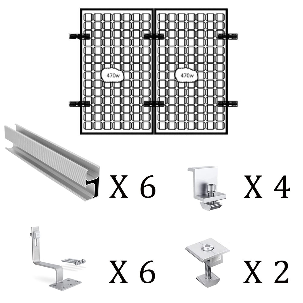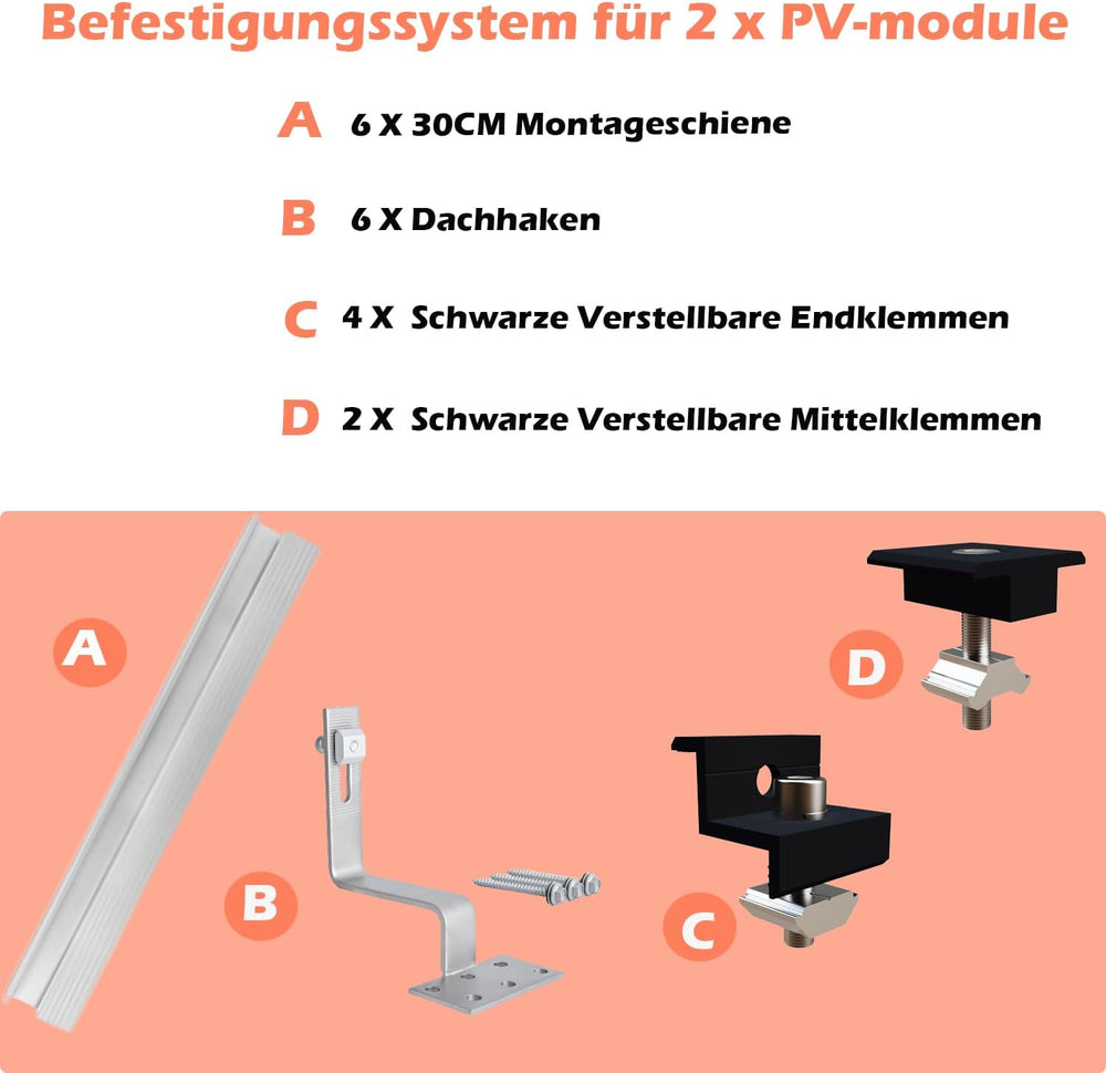 Photovoltaik Solar Halterung Ziegeldach Befestigungssystem 2 Module, Solarmodul Halterung Ziegeldach