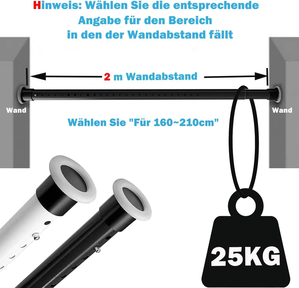 Duschvorhang Teleskopstange 160-210CM Verstellbare Klemmstange Edelstahl Duschstange Ohne Bohren Vor