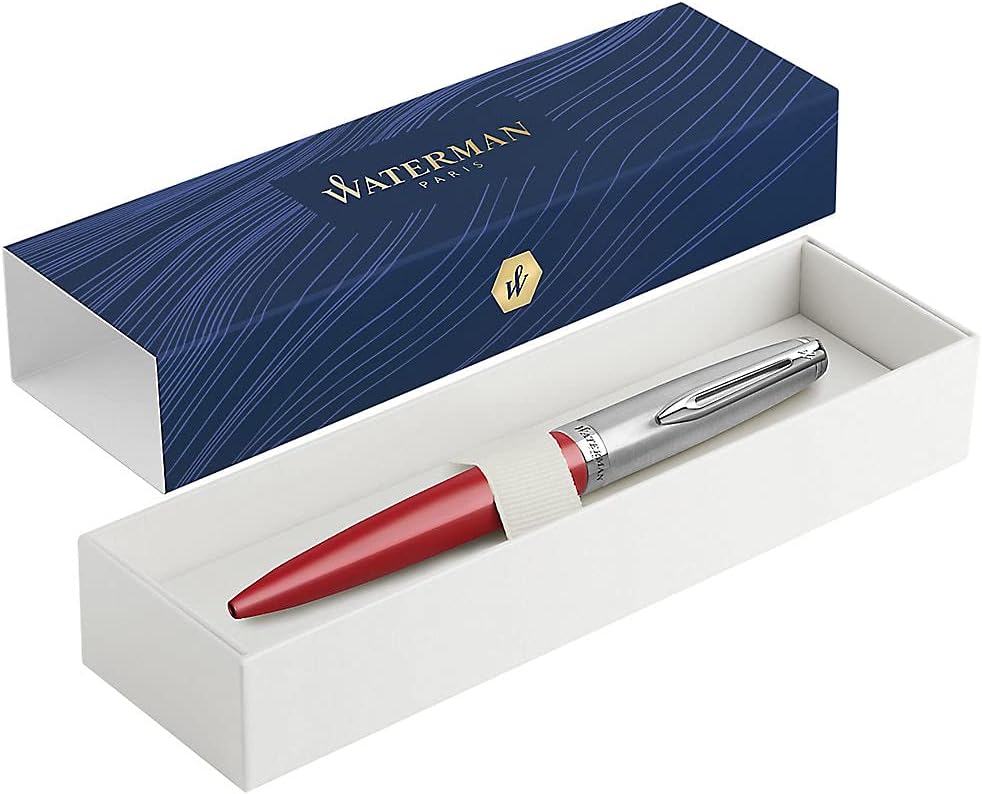 Waterman Emblème Kugelschreiber, rot mit Chromzierteilen, mittlere Schreibspitze, blaue Tinte, Gesch