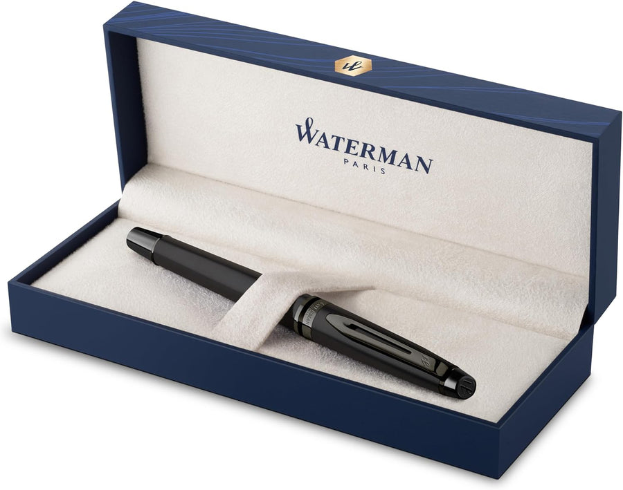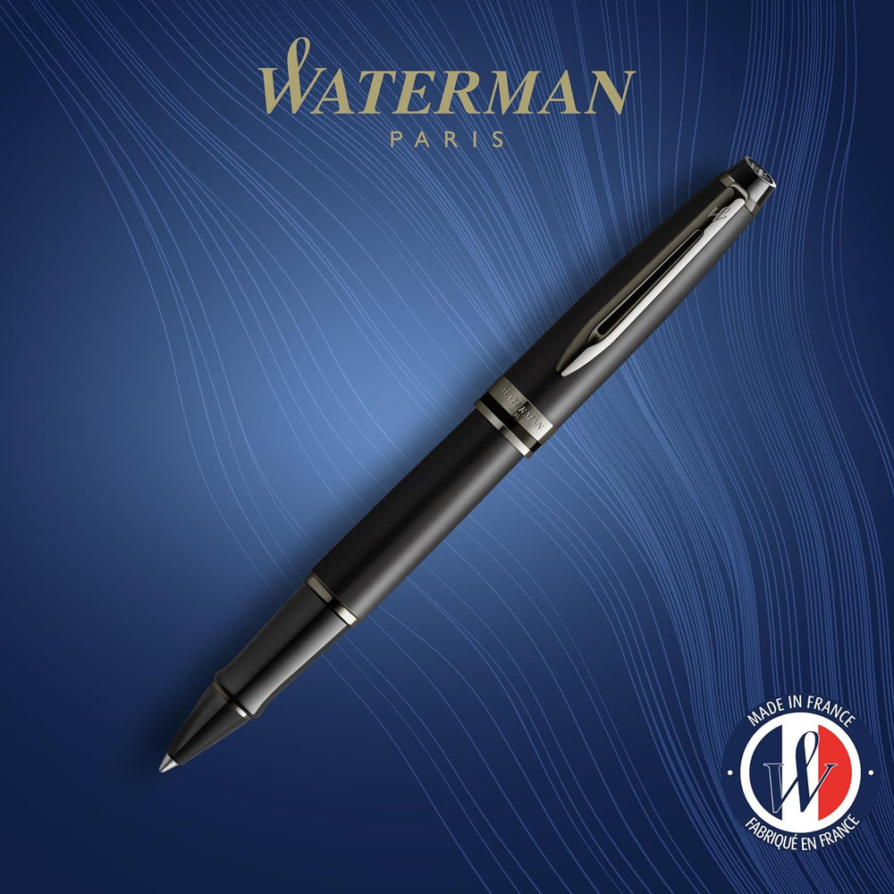 Waterman Expert Tintenroller | Mattschwarz | Chromzierteile| feine Spitze | Schwarz | Geschenkbox Ma