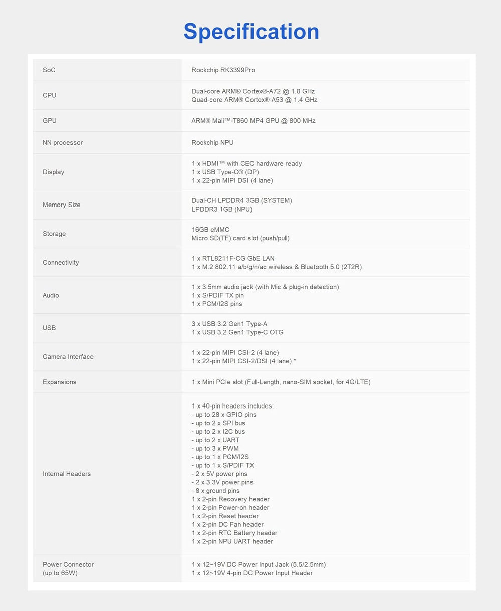 Tinker Edge R RK3399Pro Single Board Computer mit Edge TPU AI Accelerator und Dual Camera Interface
