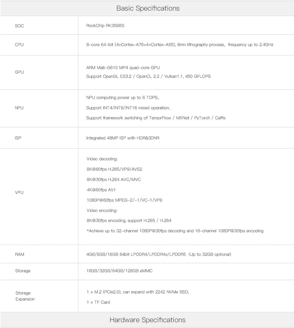 WayPonDEV Firefly ROC-RK3588S-PC 8K AI Rockchip RK3588S Single Board Computer 16GB RAM LPDDR4 & 128G