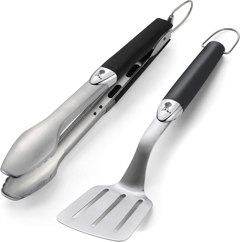 Weber 6763 Precision Grill Tongs & Spatula Set Premium Grillbesteck-2-teilig,