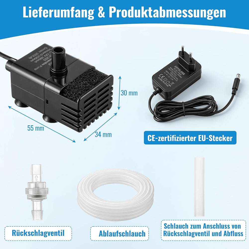 Automatische Mini-Tauchpumpe mit Wassersensor, 2,5m Schlauch & Rückschlagventil, 280L/h Kondensatpum