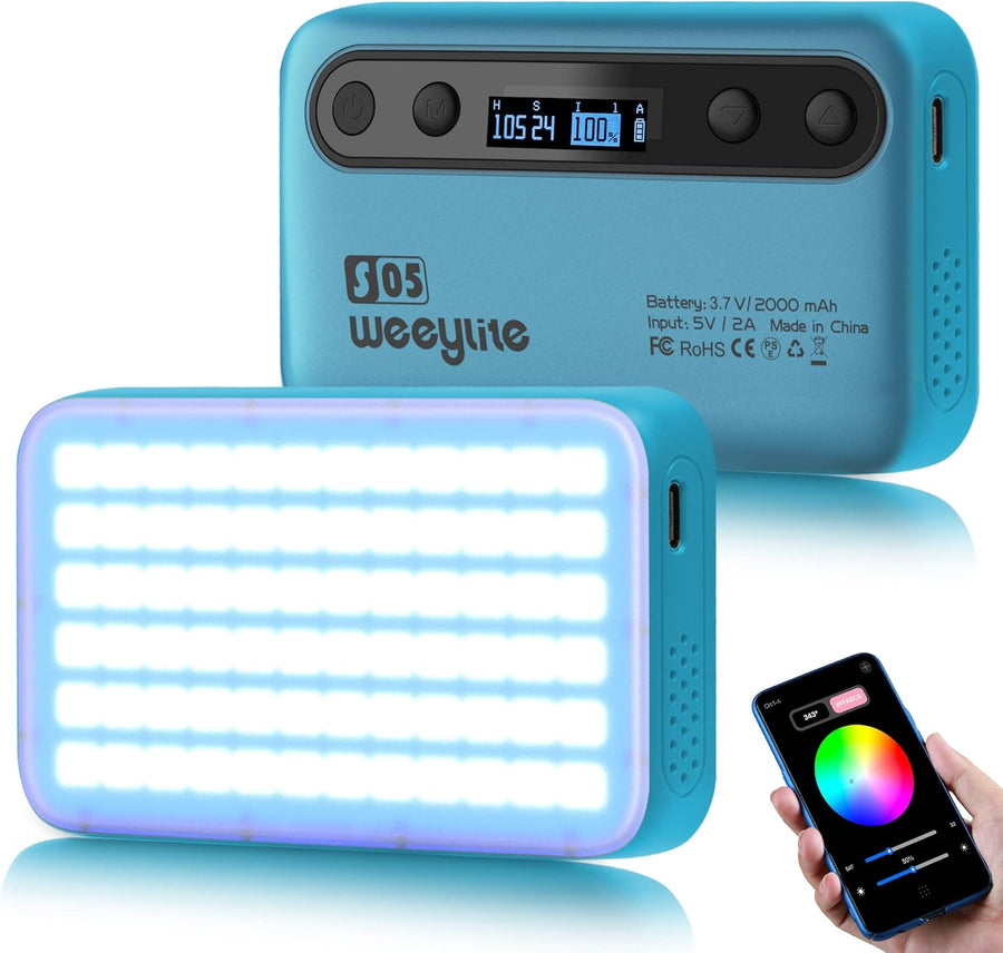 Weeylite S05 RGB LED Videoleuchte mit App-Steuerung,Mini Kameraleuchte mit 2000mAh Akku 360° Vollfar