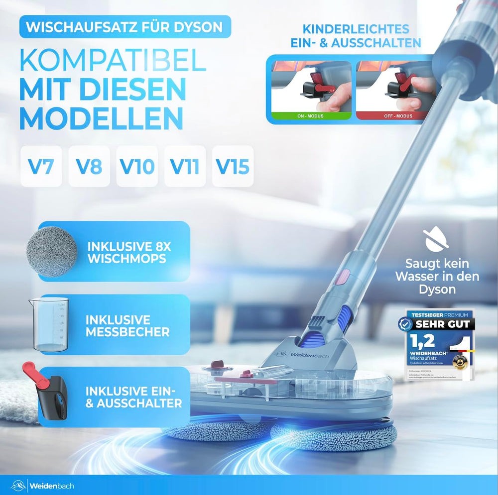 Weidenbach Wischaufsatz für Dyson V7/V8/V10/V11/V15/Gen5 - elektrisch Staubsauger - Wischmop Aufsatz