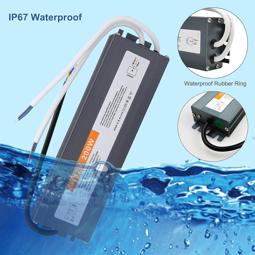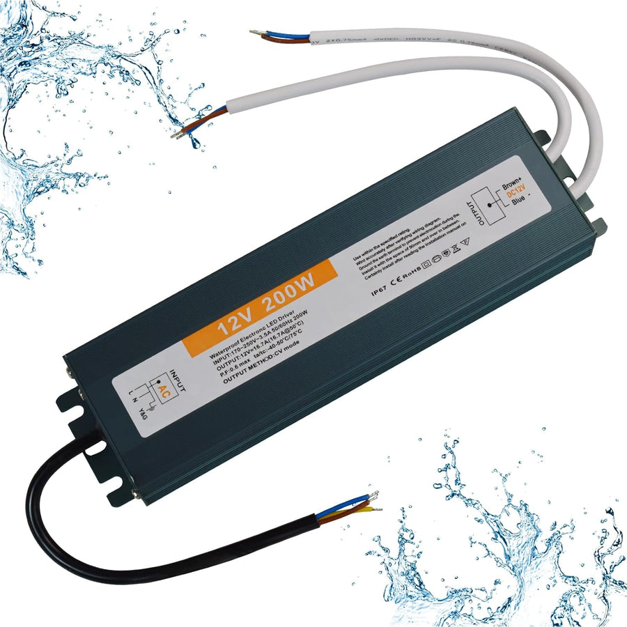 LED Trafo 12V 200W DC Netzteil Outdoor IP67 Wasserdicht Transformateur für LED Streifen, 12V 200W
