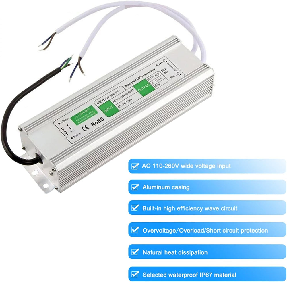 LED Trafo 12V 150W 12.5A DC Konstant Spannung LED Netzteil Ultradünn Outdoor IP67 Wasserdicht 230V a