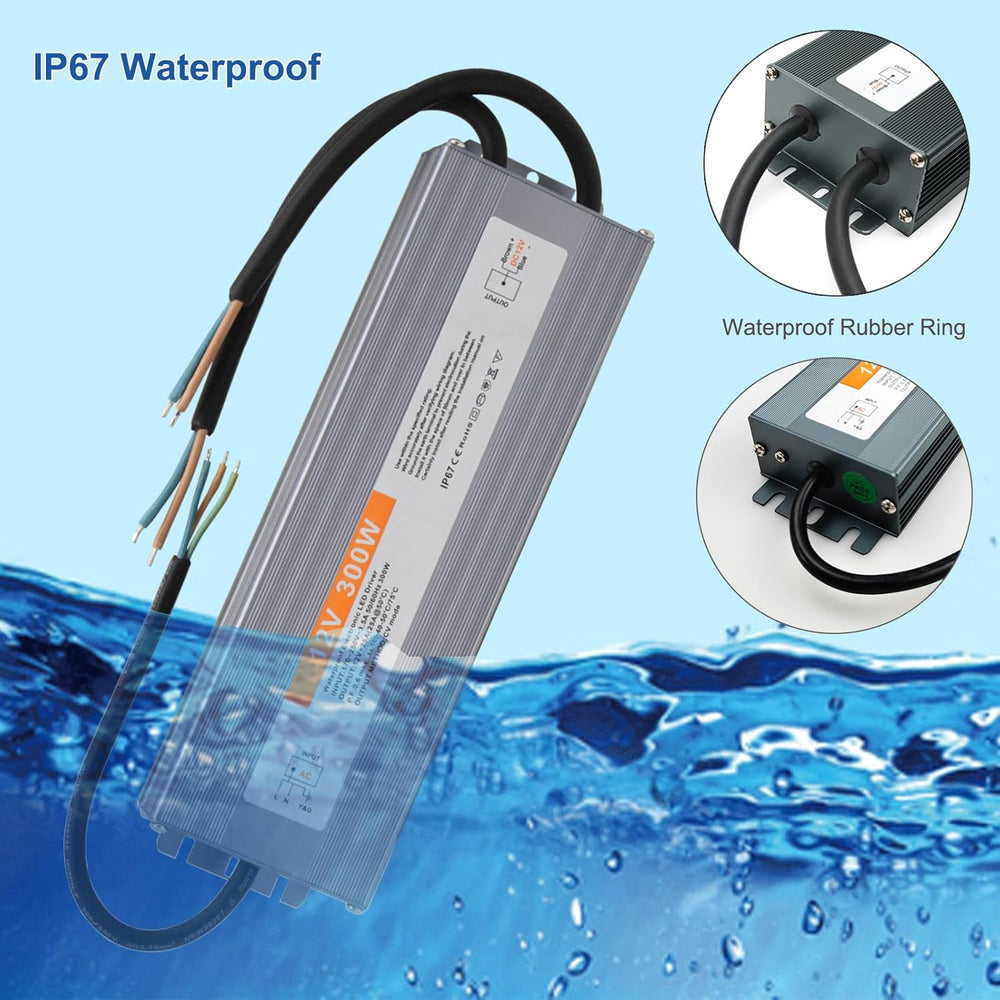LED Trafo 12V 300W DC Netzteil Outdoor IP67 Wasserdicht Transformateur für LED Streifen, 12V 300W