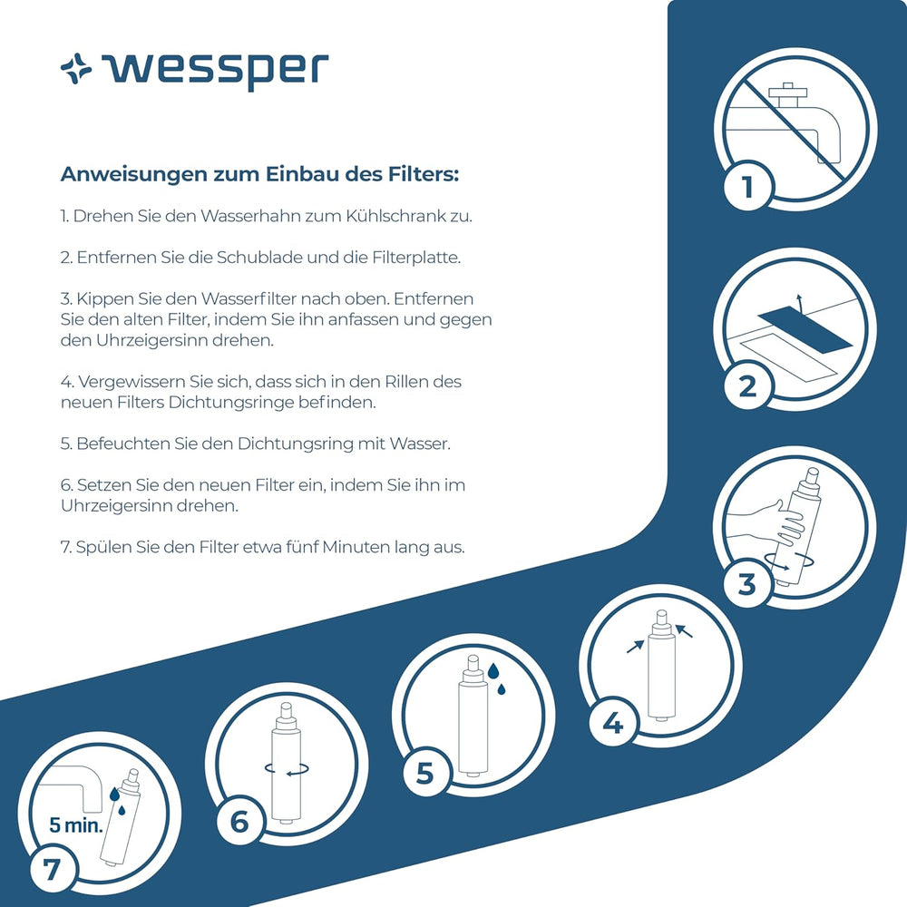 Wessper Kühlschrank Wasserfilter Ersatz für Samsung Side By Side, LG, AEG, HAIER, Whirpool, DA29-101