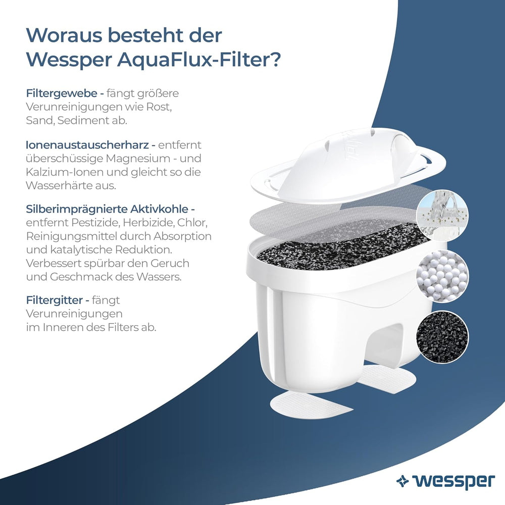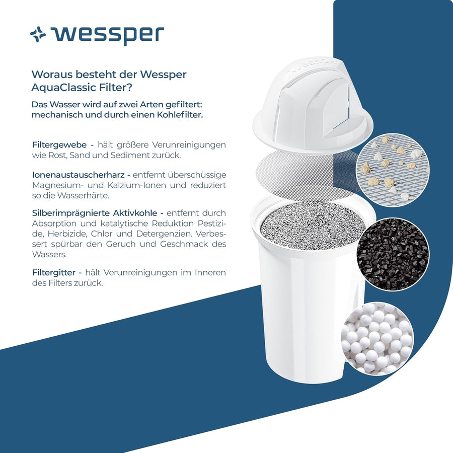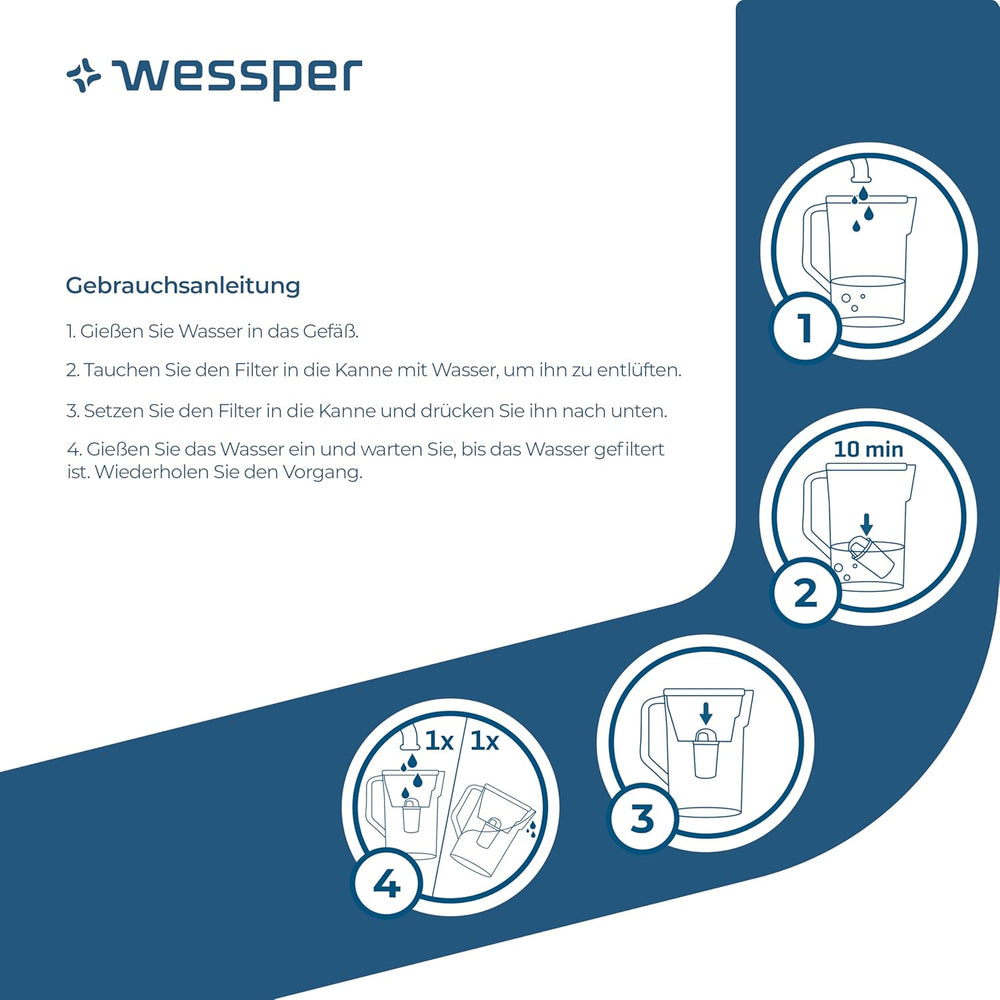 Wessper Wasserfilter Kartuschen für Wasser Kanne, Aktivkohlefilter mit Silber Imprägnierter, Ersatz