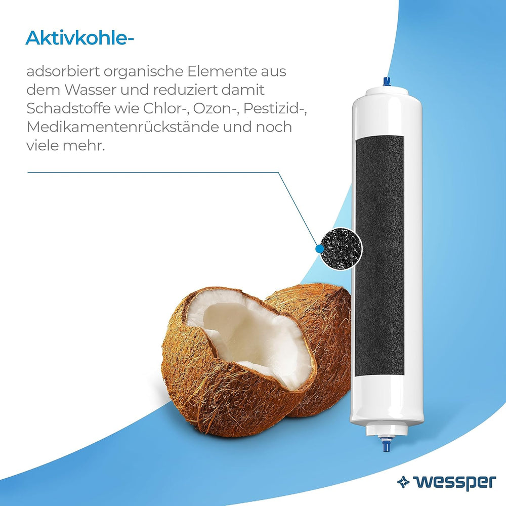 10x Wessper 10" Aktivkohle Filter für Umkehrosmose, Kokos Filterkartusche, Wasserspeiseleitung & Par