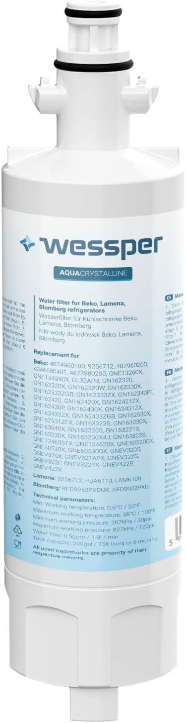 Wessper 1x 4874960100 Gefrier-Kühlschrank Wasserfilter Ersatz kompatibel mit Beko 4874960100 4394650