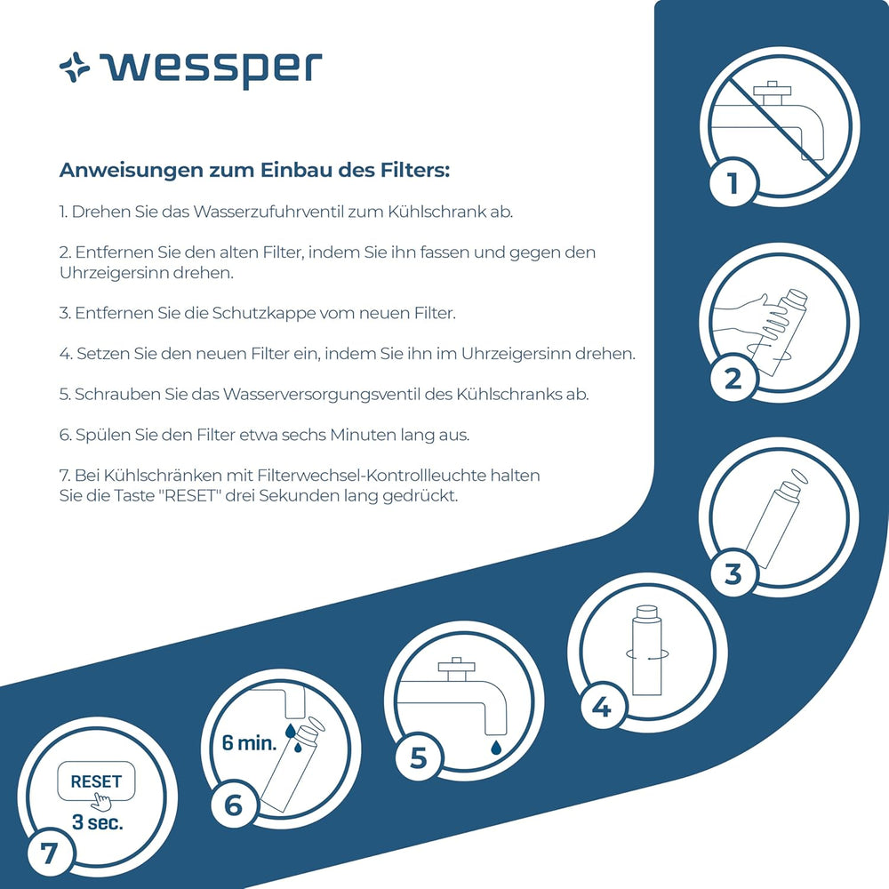 Wessper Wasser Filter für Kühlschrank, Ersatz Wasserfilter Kartuschen Kompatibel mit Samsung Side By